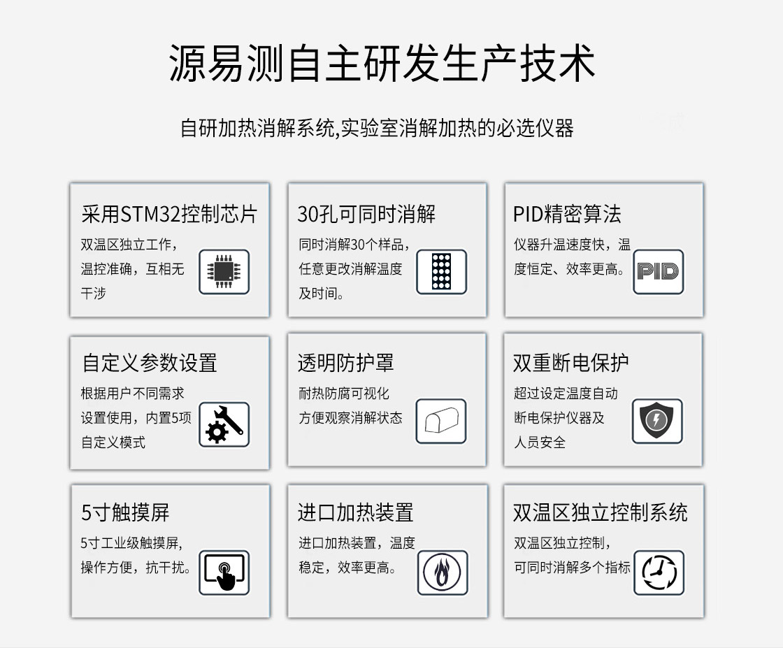 5 | 内置消解程序可任意更改消解温度及时间,方便匹配国外品牌检测仪器。 |